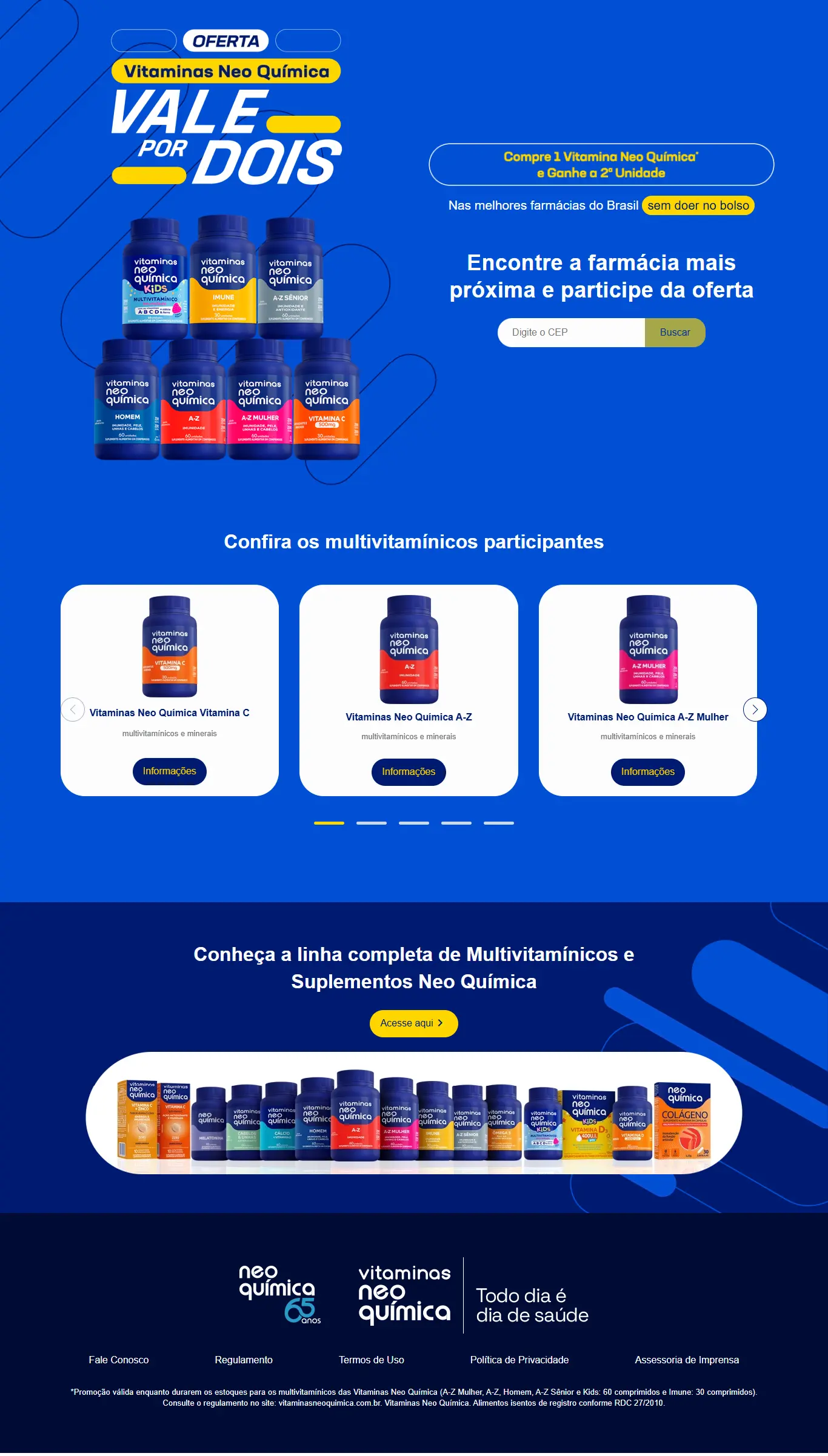 responsável pelo desenvolvimento da landing page da promoção neoquímica vale por dois, com um buscador de farmácias